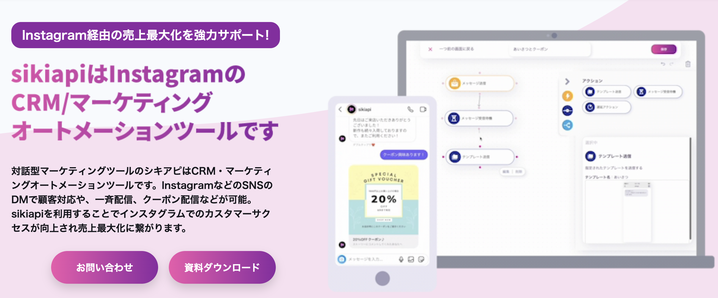 InstagramなどのSNSのDMで顧客対応や、一斉配信、クーポン配信などなどしたいなら「sikiapi」がおすすめ!